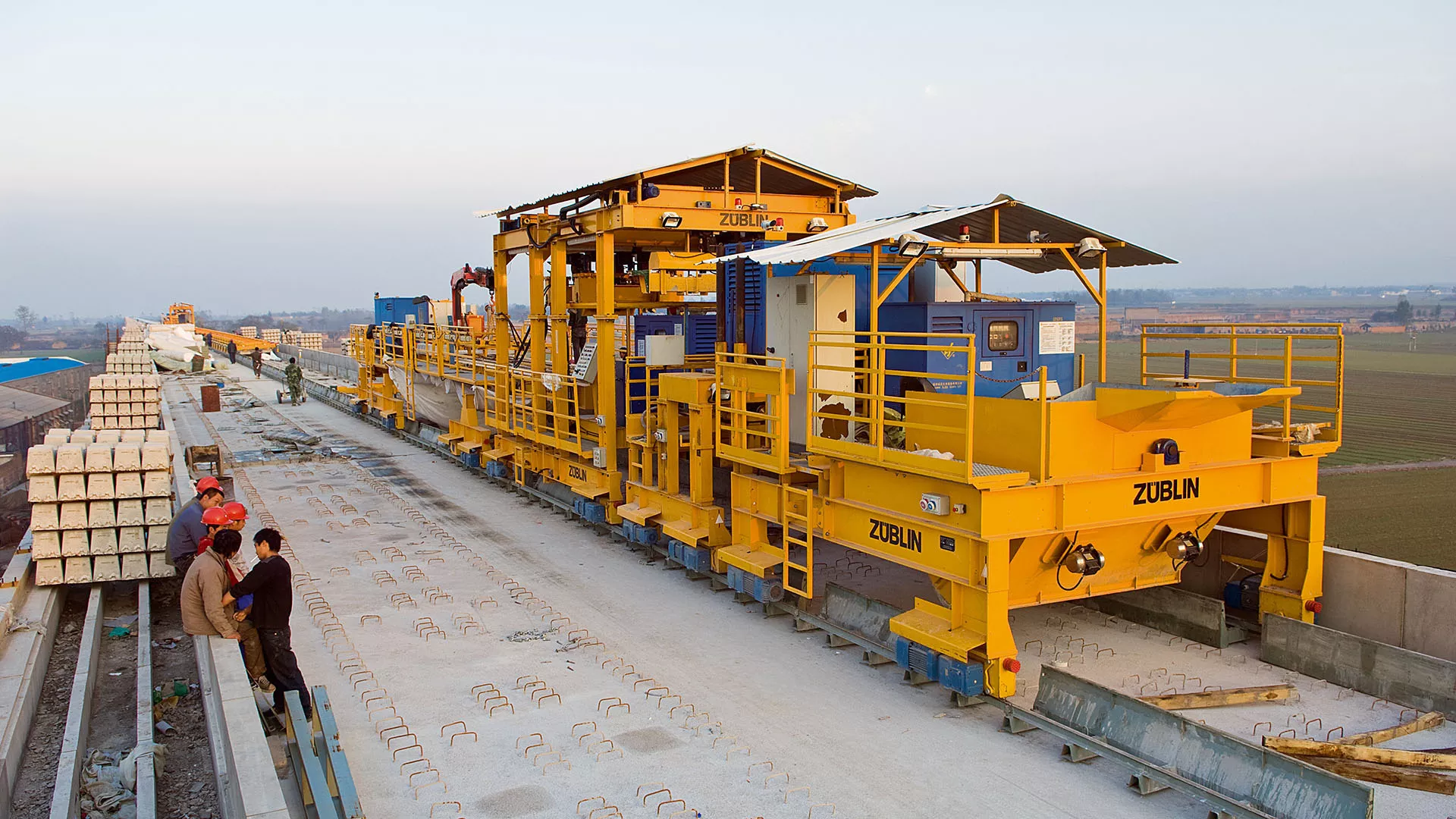 Auch bei der Errichtung der Infrastruktur kommen unsere Hebe- und Antriebskomponenten zum Einsatz. So rüsten wir mechanisierte Schienenverlegesysteme mit Demag Kettenzügen und Fahreinheiten aus, mit deren Hilfe beispielsweise Fernstrecken für Hochgeschwindigkeitszüge gebaut werden.