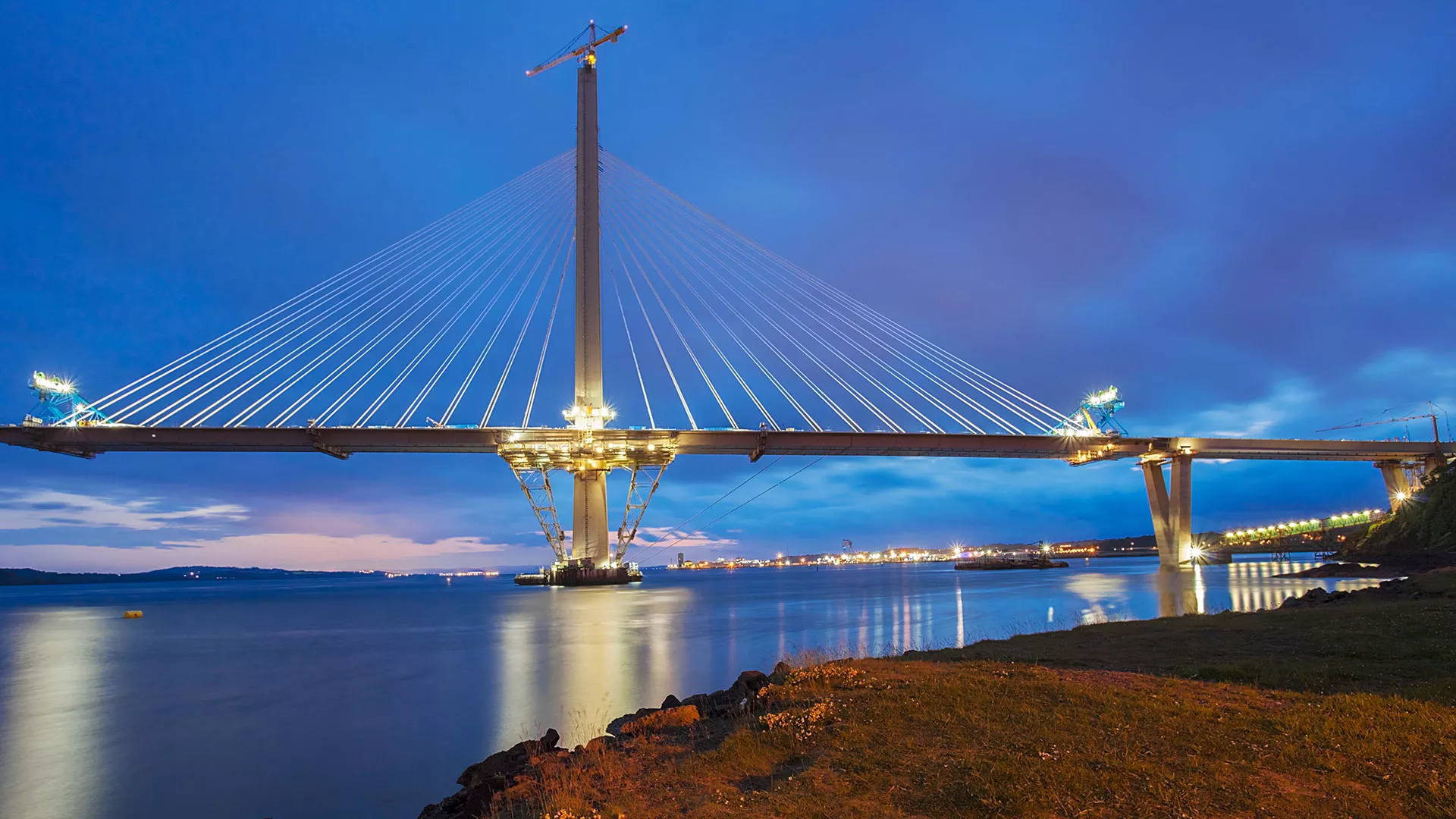 Für die „Queensferry Crossing“-Brücke bei Edinburgh/Schottland – die weltweit größte Schrägseilbrücke – sollte Moog ein Konzept für die Inspektion und Wartung des Brückenhohlkörpers entwickeln. Dabei galt es zu berücksichtigen, dass auf der 2630 Meter langen Strecke im Inneren der Brücke Steigungen und Gefälle auftreten – und dass der zur Verfügung stehende Bauraum sehr beengt ist. Die gebräuchlichste Lösung für diese Aufgabe, ein schienengebundener Verfahrwagen mit externer Energieversorgung der Fahrmotoren, ließ sich nur mit Einschränkungen umsetzen.
